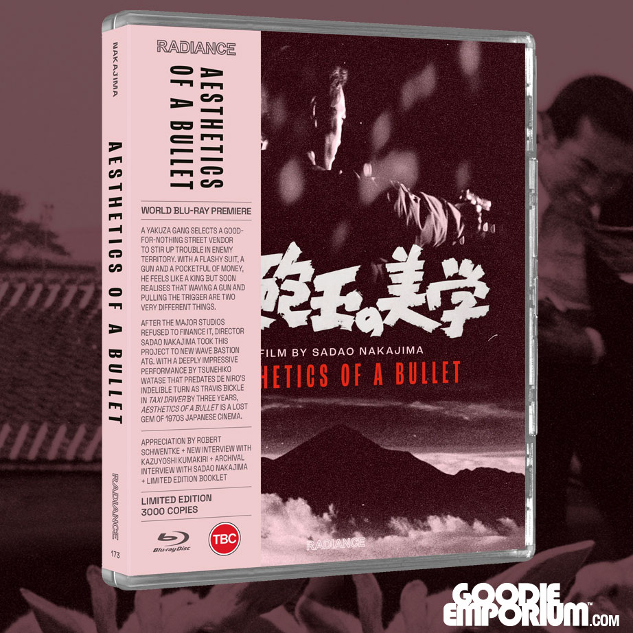 On May 18, 2026, Radiance is releasing the Blu-ray (Region A/B) for Aesthetics of a Bullet, a 1973 thriller from director Sadao Nakajima (The Japanese Godfather Trilogy).