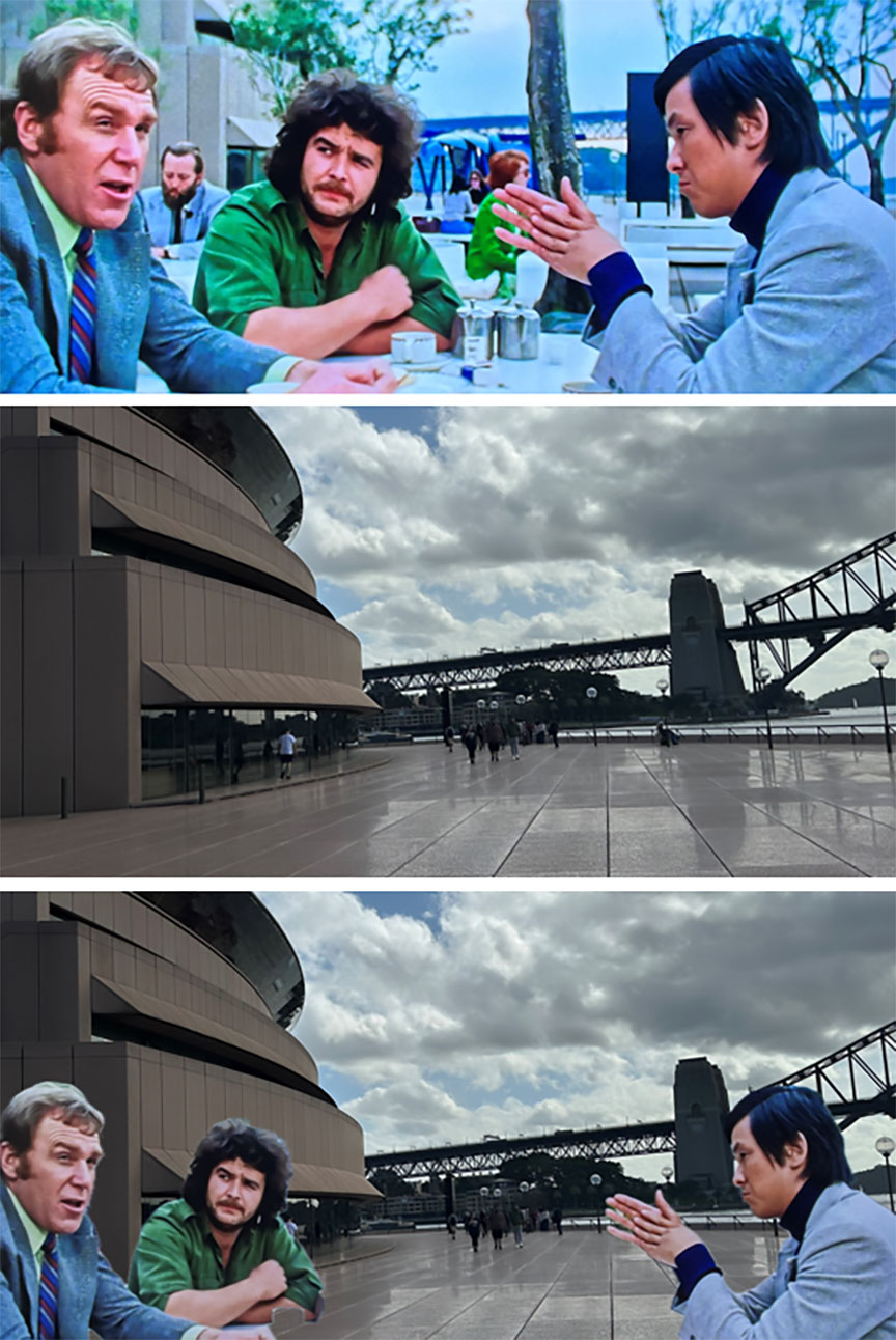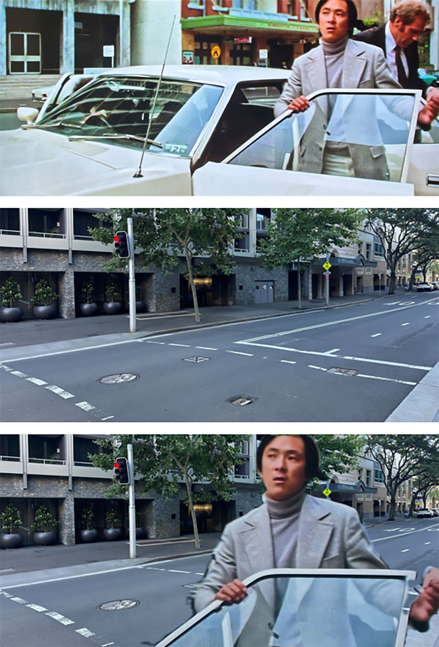 As with any location-based endeavour curiosity eventually got the better of me – there were other scenes shot in Sydney city that were readily accessible, so why didn’t I check them out as well? Wang Yu’s meeting with the pair of Aussie cops played by Roger Ward and Hugh Keays-Byrne at the iconic Sydney Opera House was a no brainer, but I became more curious about a latter scene when the trio park at the side of a road, a pub clearly visible in the background. Following some enthusiastic zooming in I was able to identify it as the Dumbarton Castle Hotel, which after some internet sleuthing I discovered was demolished in 1996, replaced by an apartment block. With so much of The Man from Hong Kong being filmed in suburban Sydney I’d expected most of the locations to look practically unrecognizable today, with perhaps only the odd one still bearing a resemblance to how it appeared 50 years earlier in 1975.